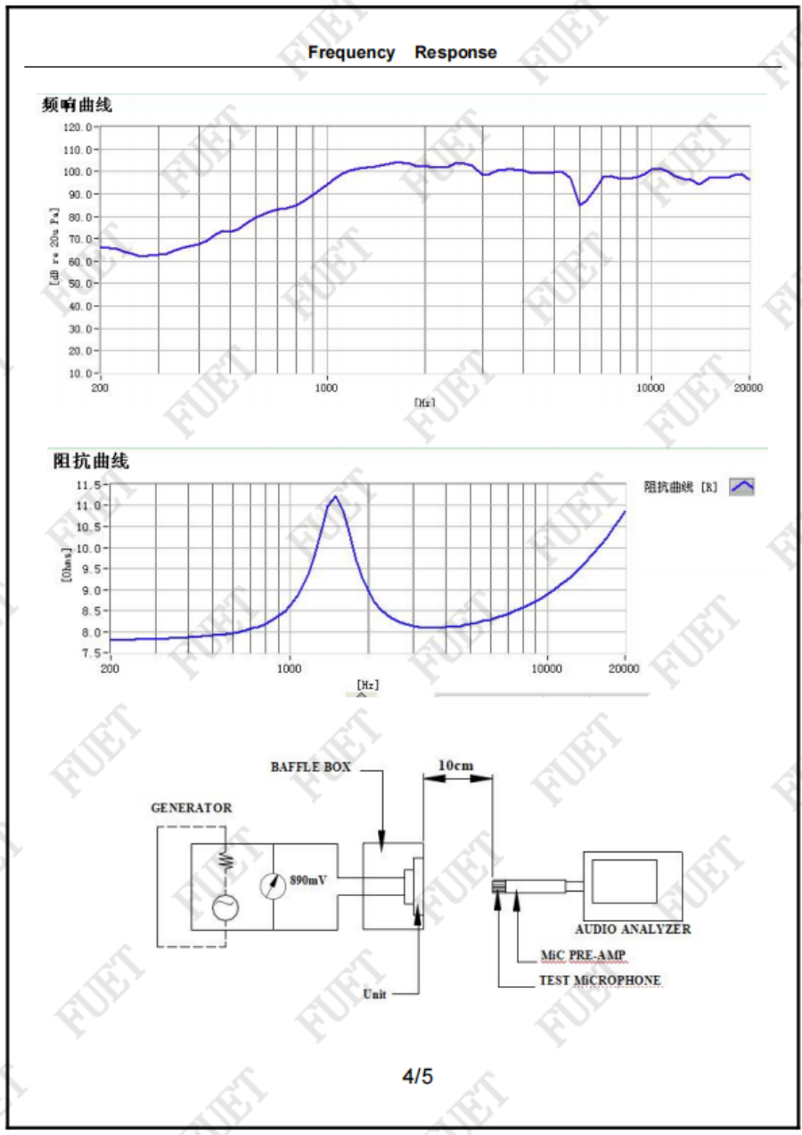 阻抗 | 8.0Ω±15% | At 3000Hz 1.0Vrms |